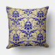 Coussin Motif de damassé de bleu français avec de l'or