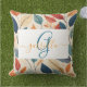 Coussin Motif de feuille dynamique avec nom et monogramme