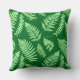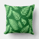 Coussin en silhouette de fougères des bois coussin motif adapté à partir d'illustrations botaniques vintages, numériquement rendu et coloré, en vert pastel doux sur vert émeraude profond