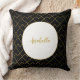 Ajoutez une touche de luxe à votre décor de vacances en personnalisant le coussin de vacances noir doré avec votre nom !