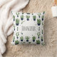 Une coussin personnalisée aux saveurs occidentales rustiques. Conçu avec un tas de cactus verts mignons dans un motif extensible. Plus précisément, des cactus épineux de couleur verte, de toutes sortes de formes et de tailles, chacun assis dans son propre pot de fleurs bleu foncé. Des petits triangles décoratifs entre eux. Illustration de fantaisie.