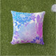 Coussin Motif Floral, Aqua, Bleu, Violet, Rose