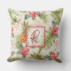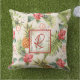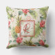 Belle aquarelle tropicale d'ananas, fleurs et feuilles avec monogramme rouge, coussin extérieur ou option intérieure disponible.