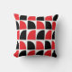 Oreiller à lancer de Motif géométrique rétro. Motif moderne moderne rouge et noir du milieu du siècle.