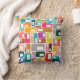 Cet oreiller de lancer a un design moderne du milieu du siècle de rectangles avec un trou blanc dans les couleurs rétro.