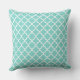 Le design carré accent coussin dispose d'un élégant motif graphique marocain quatrefoil. Les couleurs sont blanches et bleu aqua / piscine