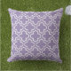 Le coussin élégant dispose d'un motif en quatrefoil marocain moderne décoré en blanc. Customisez l'améthyste / lavande violet arrière - plan à coordonner avec votre décor extérieur.