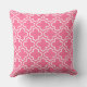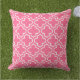 Le coussin élégant dispose d'un motif en quatrefoil marocain moderne décoré en blanc. Customisez l'arrière - plan rose vif pour vous coordonner avec votre décor extérieur.