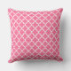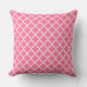 Le design carré accent coussin dispose d'un élégant motif graphique marocain quatrefoil. Les couleurs sont blanches et roses vives
