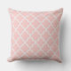 Le coussin moderne carré moderne met à votre disposition une élégante motif marocaine en quatrefoil dans des tons rose clair et blanc. Notez que la couleur arrière - plan peut être modifiée pour correspondre à votre décor maison.