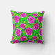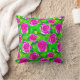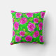 Jeter l'oreiller dans un motif de rose fuchsia profonde, aquarelle, roses avec feuilles dans les tons vert émeraude