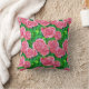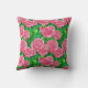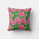 Jetez l'oreiller dans un motif de roses aquarellés, dans les nuances fuchsia profonde au rose pastel, contre un arrière - plan de feuilles verts