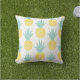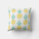 Le design coussin de style tropical est orné d'un motif de fruits de mer jaunes et minés bleu/vert d'ananas.