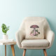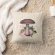 Belle conception d'oreillers à projectile présente un champignon rose avec des fleurs roses et des feuilles verts luxuriants sur un arrière - plan rayé vintage.