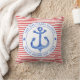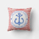 NewparkLane - Oreiller à lancer nautique, avec un motif rayé rouge et blanc et une ancre bleue marine dans un cadre blanc circulaire. Ajoutez votre nom de famille ou tout autre texte personnel dans le cadre autour de l'ancre. Conception sympa pour une maison de plage, et fait un merveilleux cadeau pour les amis avec une nouvelle maison. Pour tous ceux qui aiment les thèmes nautiques. Découvrez ceci pour d'autres articles correspondants et amusez-vous et mélangez et Match! Également disponible en bleu.