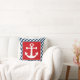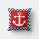 Design à thème nautique avec décoration d'ancre en carré sur arrière - plan rayé bleu et blanc