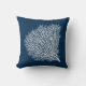 Coussin orienté nautique avec le corail blanc de fan sur l'arrière - plan de bleu marine