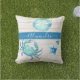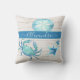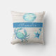 Bois blanc, crabe bleu Turquoise nautique, écrevisse et Coussins d'aquarelle en dollar de sable avec nom de monogramme. Design personnalisé bleu et blanc, égayer n'importe quelle chambre, Parfait pour les enfants.