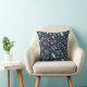 Coussin Navy Blue Rustic Floral Folk Art Pattern Pillow