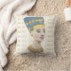 Ce coussin de lancer personnalisable présente une photo de la reine égyptienne, Nefertiti contre un arrière - plan blanc, devant un motif carrelé de son cartouche, et un motif carrelé de son cartouche en or sur le dos. Les couleurs arrière - plans peuvent être changées, et le coussin renversé pour un look différent.