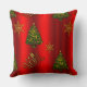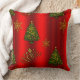 Un coussin de Noël rouge très design avec un motif d'arbres de Noël traditionnels, décoré et décoré. Autour des arbres sont des étoiles de Noël dorées et un ornement de Noël doré très décoratif : le mot Noel en métal or (faux). Dans l'arrière - plan est un motif de dégradé rouge foncé. Ce coussin de Noël élégant et coloré apporte une touche très classe à la décoration de Noël de ces vacances.