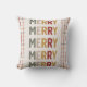 Ajoutez une pop de couleur festive à votre maison avec cet oreiller de Noël moderne! Avec un motif animé de lignes sinueuses dans les tons classiques de rouge, vert et jaune moutarde, ce design prend une tournure ludique et contemporaine avec un rectangle beige audacieux traversant la coussin. Le mot "MERRY", répété en lettres colorées, ajoute une énergie joyeuse et une ambiance de vacances moderne. Idéal pour égayer votre salon ou donner un cadeau à ceux qui aiment le décor élégant de saison.