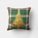 Christmas Jetez un oreiller vert, blanc plaid et un or brillant arbre de Noël et les mots, "Joyeux Noël".