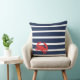 Coussin Nom de bateau à rayures bleues navales et crabe ro