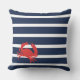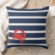 Fait un cadeau parfait avec des rayures bleues navales et blanches avec un oreiller crabe rouge. Ajoutez votre nom de famille ou le nom de votre bateau au dos de l'oreiller.