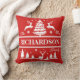 Coussin Nom de famille de Noël rouge | Monogramme de nom p