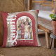 Ajoutez une touche de charme rétro à votre espace de vie avec notre coussin personnalisé. Cette pièce unique, avec en arrière-plan une arche arc-en-ciel rouge vintage, est le parfait mélange de nostalgie et de confort. Imprimé avec le mot "famille" en blanc gras, et conçu pour vous d'incorporer votre propre mémoire chère à travers une photo remplaçable. Personnalisez-le davantage avec votre nom et l'année qui vous tient à coeur. Ce n'est pas seulement un coussin - c'est un gardien qui raconte votre histoire.