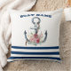 Coussin Nom du bateau, Fleurs d'Ancres Bleus de marine