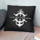 Le bateau nautique lance l'oreiller en lisant votre nom de bateau personnalisé entouré d'un puits de bateau et ancre sur le noir.