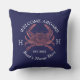 Nom du bateau nautique Crabe rouge Bienvenue Marine Bleu Coussin extérieur et blanc Script Bienvenue à bord Coussin extérieur