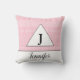 Vous adorerez ce mignon oreiller monogramme rose et blanc! Arrière - plan d'impression motif blanc géométrique. En arrière - plan blanc est monogrammed initial et nom dans le script.