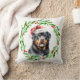 Coussin de Noël de vacances avec une aquarelle Rottweiler et aquarelle conception couronne de Noël. Ajoutez le nom du chien à la conception et c'est l'idée cadeau parfaite pour cet amant de laboratoire que vous connaissez, ou vous-même !