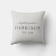 Customisez ce moderne et coussin personnalisé gris-foncé profond classique à la mode avec vos propres prénoms par manuscrit marqué avec des lettres par main à la mode, votre nom de famille/nom de famille, et année où votre famille a été établie en texte gris-clair. Des couleurs de police et d'arrière - plan peuvent être changées en cliquant sur "cliquent sur ici pour customiser plus loin" dans la zone de dialogue "personnalisent ce modèle". C'est le coussin parfait pour les nouveaux mariés ou comme cadeau de mariage. Veuillez me contacter si vous voudriez davantage de personnalisation avec vos coussins !