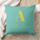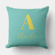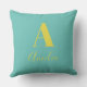 Coussin Nom monogramme minimal Turquoise Jaune