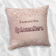Un coussin pour une Quinceañera, chambre pour filles de 15 ans. Un arrière - plan d'or rose aux confettis. Personnalisez et ajoutez un nom. Quinceañera est écrit en or rose foncé avec un grand script moderne.