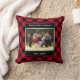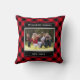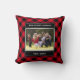Ce coussin décoré d'un monogramme de photo de famille est parfait pour les vacances ou n'importe quand de l'année. Les caractéristiques de conception votre photo de famille au centre avec une frontière dans le blanc et le noir. Est en haut votre nom de famille et au-dessous de l'année établie pour personnaliser. L'arrière - plan du coussin est un plaid à la mode de buffle rouge et noir. Veuillez changer les photos en vos propres pour celle d'un cadeau personnalisé par sorte. Conçu par le ©Tim Coffey et Susan Coffey d'artistes.