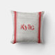 Toile en fausse toile moderne et rustique avec bandes de sacs à grains rouges ou bleus et nom personnalisé. Pourrait facilement compléter n'importe quel style de décoration maison tendance, chambre garçon ou adolescent