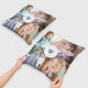 Personnalisé Nous Vous Aimons Papa Moderne Dusty Blue Heart 4 Photos Jeter Oreiller. Un collage photo personnalisé mignon "Daddy We Love You" jette l'oreiller. Un cadeau parfait pour la Fête des pères, les anniversaires ou toute autre occasion. Entièrement personnalisable avec vos propres photos. Imprimé à l'avant et à l'arrière.
