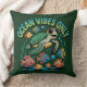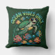 Adorable turtle in sunglasses and fish with typography of Ocean Vibes Only. Background color can be changed.