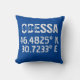 Design d'oreiller de lancer moderne caractéristiques de latitude et de longitude coordonnées pour Odessa, Ukraine en caractères gris clair en détresse sur l'arrière - plan bleu