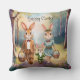 Coussin Oeufs de chasse de la famille de lapin de Pâques -