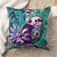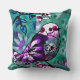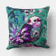 Coussin Oiseau Abstrait blanc Floral Turquoise pourpre