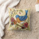 Coussin Oiseau bleu avec le carreau jaune de points de