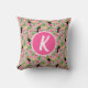 Coussin Oiseau rose floral tropical Monogramme Oiseau à la
