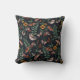 Cet oreiller de lancement présente des colibris, des oiseaux, des papillons, des papillons de nuit, des fougères, des champignons et des fleurs sur un arrière - plan bleu foncé.