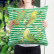 Coussin Oiseaux tropicaux en rayures blanches vertes lance
